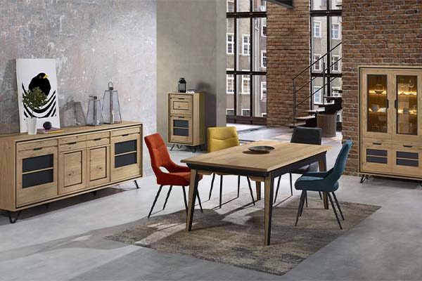 La collection Gala des meubles Girardeau, est l’une de celles qui séduisent parce qu’elle évite les caricatures. Elle ne bascule ni dans le “tout bois rustique”, ni dans l’industriel brut et froid. Elle marie les deux mondes, avec un équilibre qui fonctionne dans beaucoup d’intérieurs actuels.